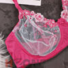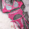 ست لباس زیر و بند جوراب مدل ژاسمین (سرخابی)