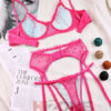 ست لباس زیر و بند جوراب مدل ژاسمین (سرخابی)