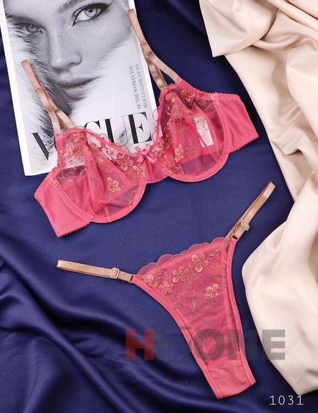 این ست از جنس تور است که با رنگ جذابش دلربایی میکند. روی کاپ سوتین این ست زیبا طرح های بسیار چشم نوازی کار شده است.