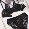 روی سرتاسر سوتین و هم چنین در قسمت جلوی شورت این ست لباس زیر گل های گیپوری خیره کننده ای کار شده است.