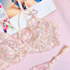 روی شورت و سوتین این ست طرح های زیبایی از گل های ریز و درشت روی زمینه ی توری کار خودنمایی می کند.
