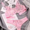 روی سرتاسر سوتین و هم چنین در قسمت جلوی شورت این ست لباس زیر گل های گیپوری خیره کننده ای کار شده است.