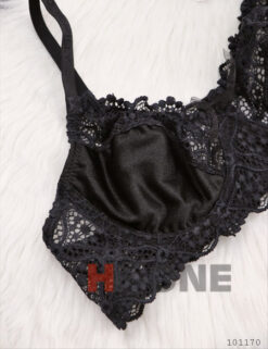 ست لباس زیر گیپوری مدل برگی با شورت بکلس (مشکی)